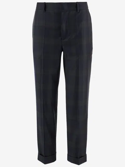 Blue Wool Trousers In Black