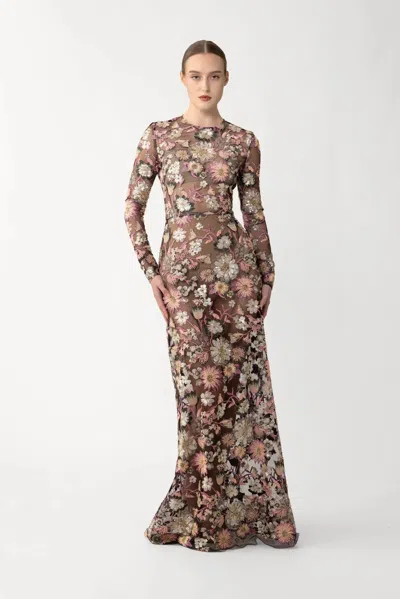Jackson Jacquard Gown In Pink Multi