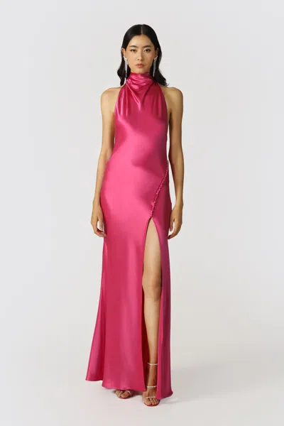 Penelope Backless Satin Gown In Fuchsia