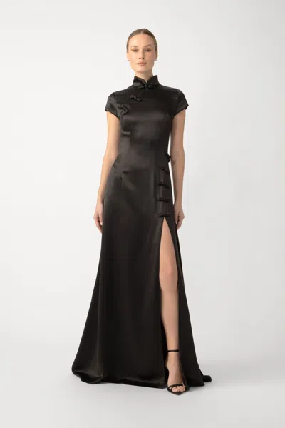 Sylvie Mandarin-collar Floral Chiffon Maxi Dress In Orange Multi