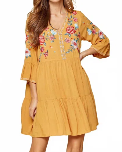 Embroidered Babydoll Dress In Marigold In Yellow
