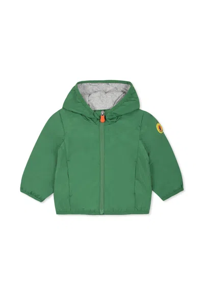 Green Down Jacket For Baby Boy With Logo