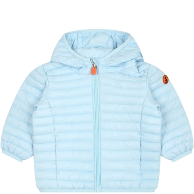 Light Blue Down Jacket For Baby Boy With Logo