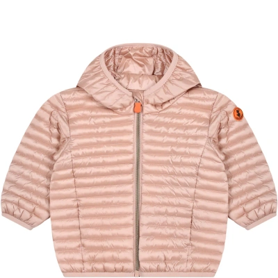 Pink Lucy Down Jacket For Baby Girl With Logo