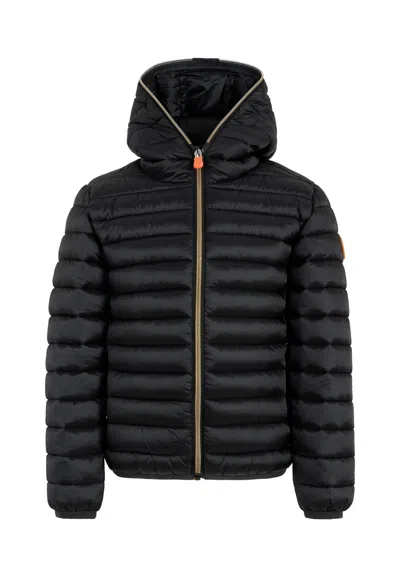 Kids' Long Down Jacket With Hood In Black