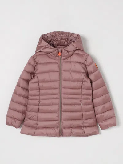 Kids' Pink Giga Down Jacket For Girl With Logo In Brown