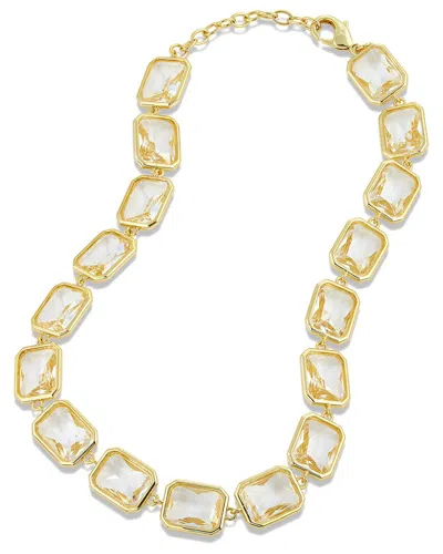 18k Over Silver Cz Adjustable Bracelet In Gold