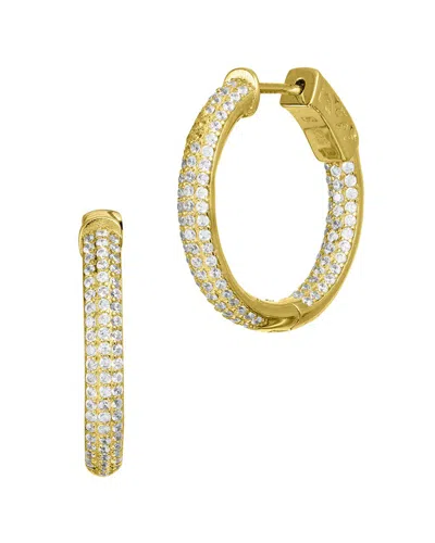 18k Over Silver Cz Hoops In Gold