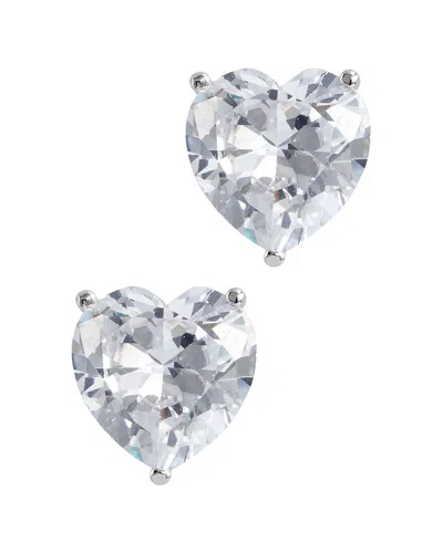 Silver Cz Heart Solitaire Stud Earrings In Metallic