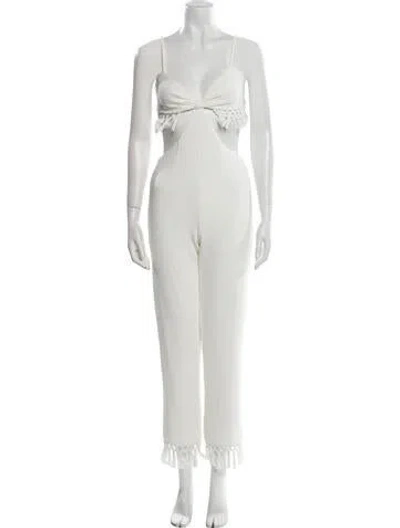 Pre-owned Plunge Neckline Jumpsuit In White