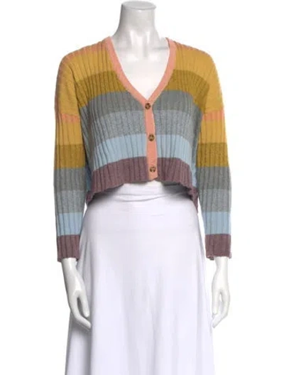 Pre-owned Striped V-neck Sweater In Blue