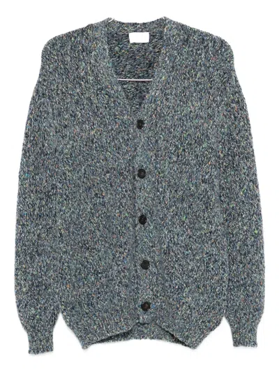 Blue And Grey Cardigan In Wool With Bottoms In Gray