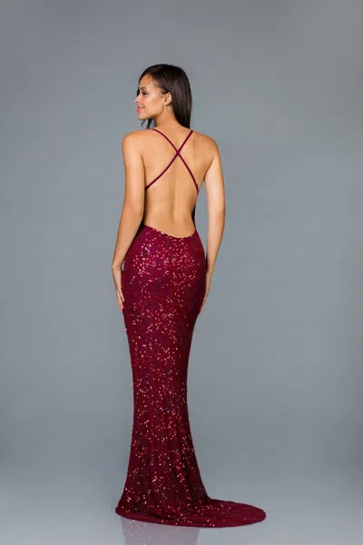 60363 Prom Long Formal Fitted Sequin Dress In Red
