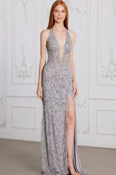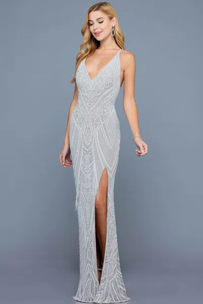 80121 Prom Beaded Long Formal Slit Evening Dress In Silver