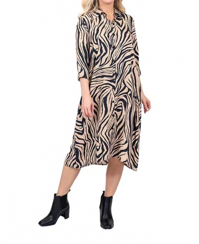 Animal Print Midi Shirt Dress In Beige Multi In Brown
