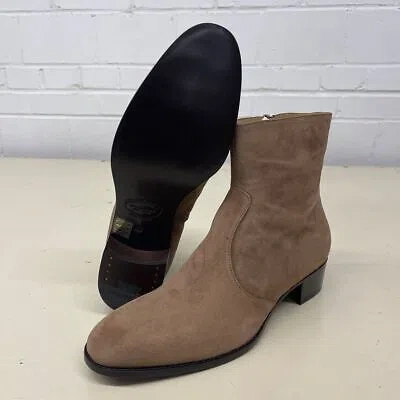 Pre-owned Warren Zip Ankle Boots Men's Size Eu43 / Us10 B Tan Suede In Brown