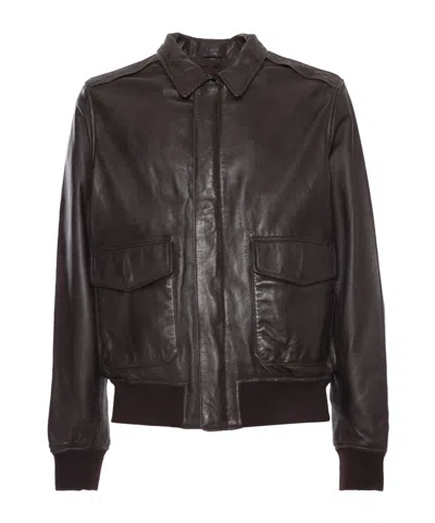 Long-sleeved Leather Jacket In Brown