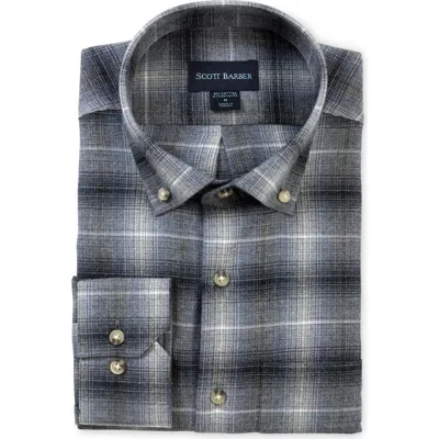 Regular Fit Ombré Plaid Cotton Twill Button-down Shirt In Gray
