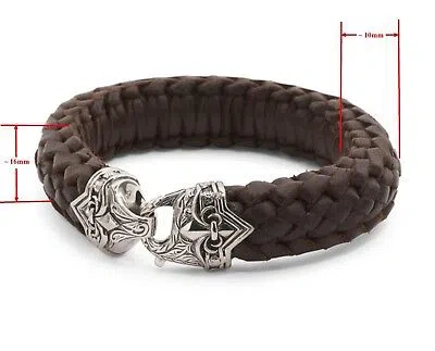 Pre-owned 8.5" Brown Leather Braided 16mm Bracelet Silver Clasp Men Women