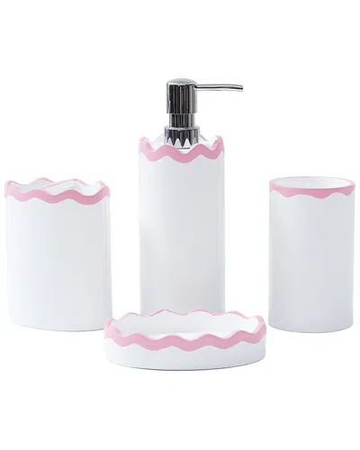 Ric Rac 4 Piece Bath Accessory Set - Pink In White