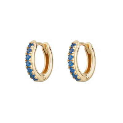 Women's Gold / Blue Gold Huggie Earrings With Blue Stones
