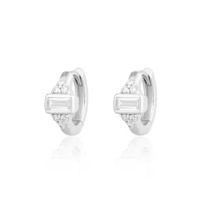 Women's Silver Sparkle Huggie Earrings With Baroque Pearls In White