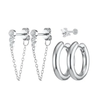 Women's Silver Sparkle Huggie And Tiny Stud Set Of Earrings In Metallic