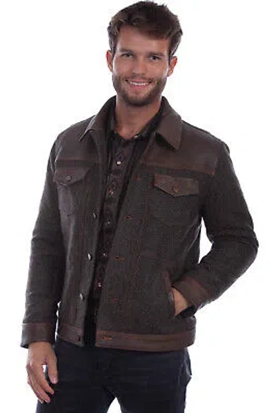 Pre-owned Mens Tweed Jean Vintage Brown Leather Leather Jacket