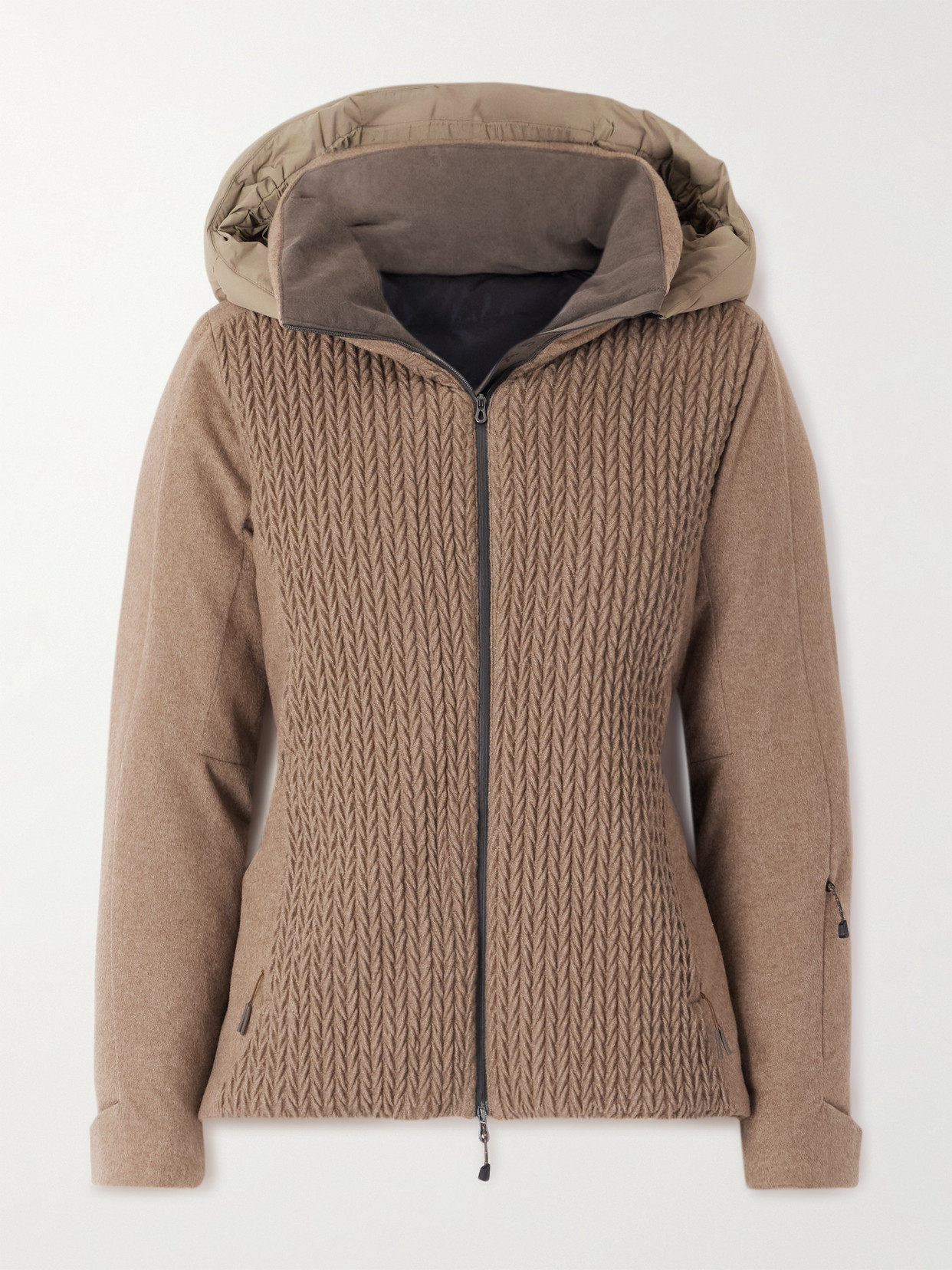 Armor 2.0 Hooded Padded Cable-knit Cashmere Ski Jacket In Brown