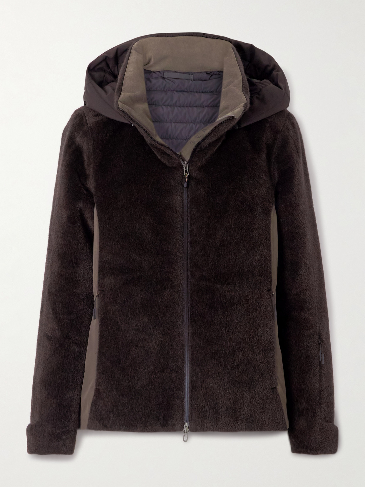 Belted Plush And Twill-trimmed Wool And Cashmere-blend Felt Down Ski Jacket In Brown