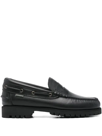 Owen Tumbled Eyelet Lace-up Loafers In Black