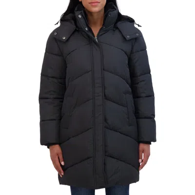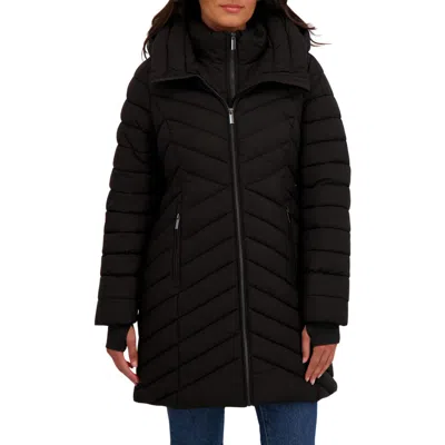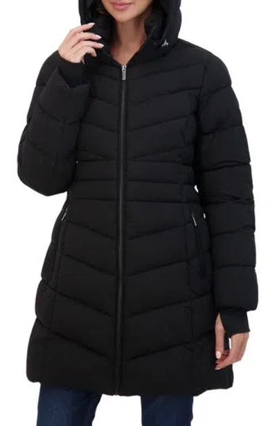Water Resistant Hooded Long Puffer Jacket In Black