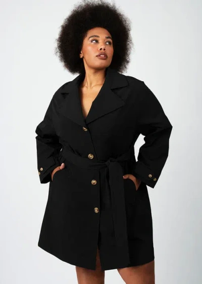 Tech Twill Trench Coat Plus Size In Jet Black