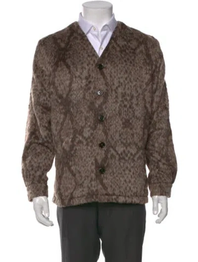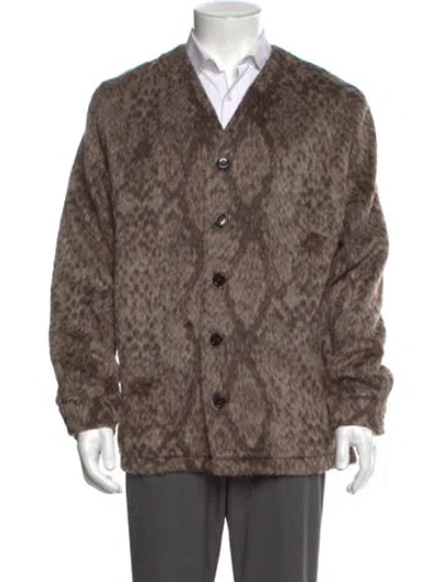 Pre-owned V-neck Long Sleeve Cardigan In Brown