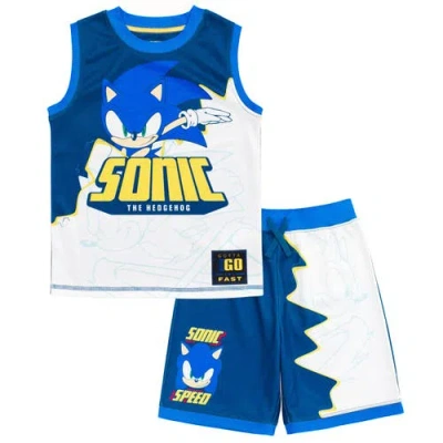 Kids' Sonic The Hedgehog T-shirt & Athletic Mesh Shorts Set In Blue