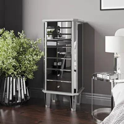 Darrin Narrow Mini Console Table With Mirrored Top Gunmetal Gray