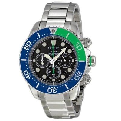 Pre-owned Ssc239p1 Chronograph Solar Watch Steel V175 Blue Green Dial Luminous