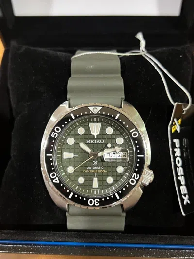 Pre-owned Prospex Srpe05k1 Kind Turtle Green Automatic Sapphire Diver's Men's Watch