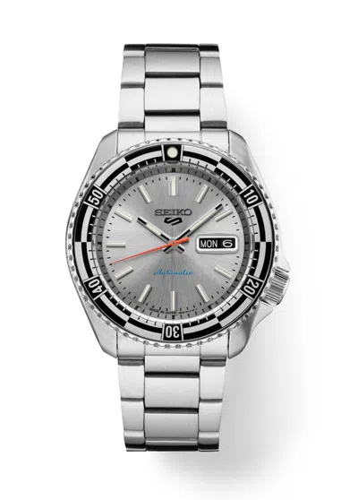 Pre-owned 5 Sports Srpk09 42.5 Mm Steel Silver Dial Day Date Automatic Men's Watch