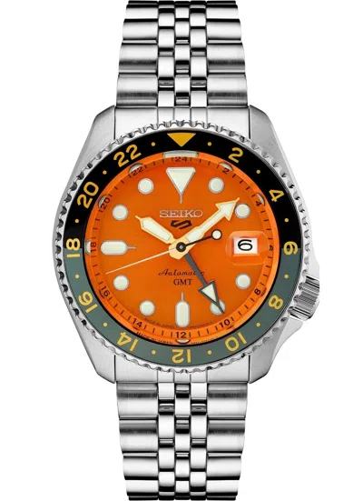 Pre-owned 5 Sports Ssk005 Gmt 42.5mm Steel Orange Dial Automatic Men's Watch
