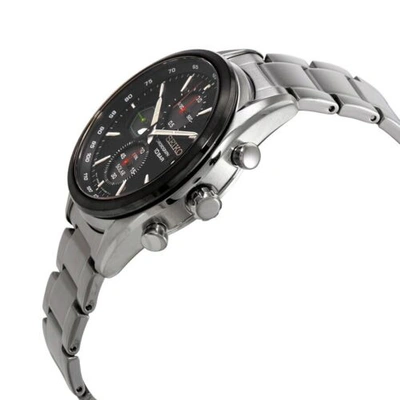 Pre-owned Men's Watch Chronograph Solar Powered Black Dial Steel Bracelet Ssc803