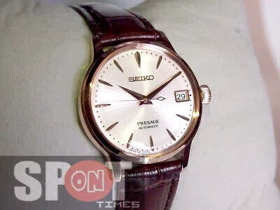 Pre-owned Presage Cocktail Rose Gold Automatic Brown Leather Ladies Watch Srp852j1