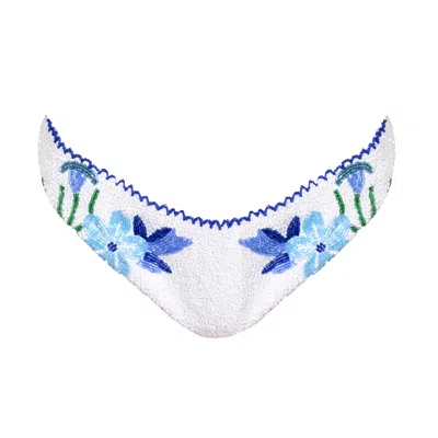 Women's White / Blue Zenya Hand-beaded Embellished Bikini Top- White/blue