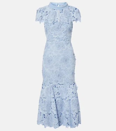 Belted Ruffled Lace-trimmed Crepe Midi Dress In Black