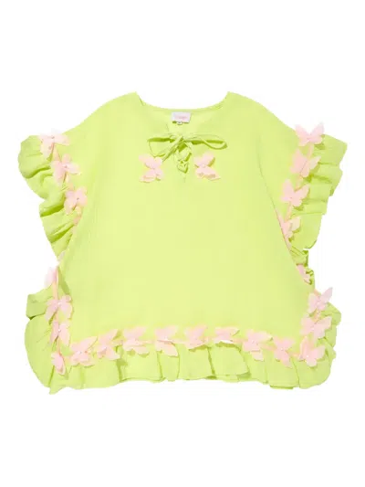 Kids' Butterfly-embellished Ruffled Casual Dress In Green
