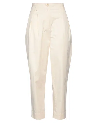 Woman Pants Cream Size 10 Cotton, Polyamide, Elastane In Neutral