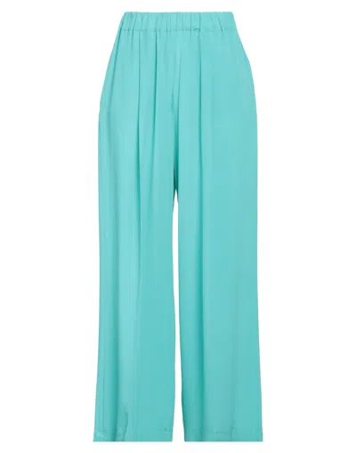 Woman Pants Turquoise Size 8 Acetate, Silk In Blue