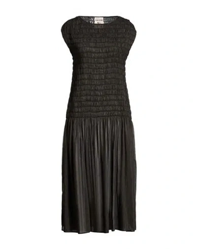 Woman Midi Dress Charcoal Size 8 Cotton, Silk In Black