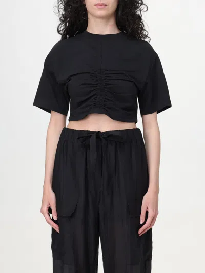Woman T-shirt Dark Brown Size S Wool, Polyamide