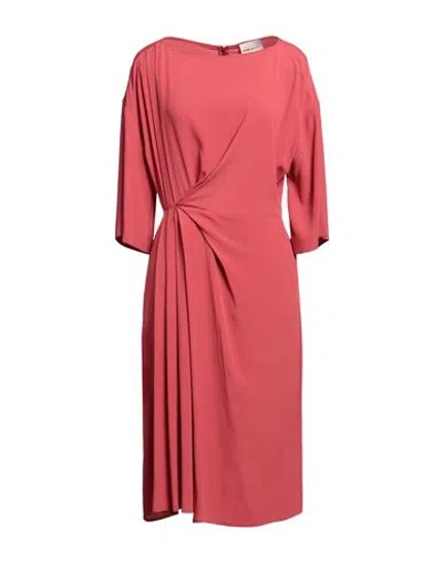 Woman Midi Dress Coral Size 10 Acetate, Silk In Red